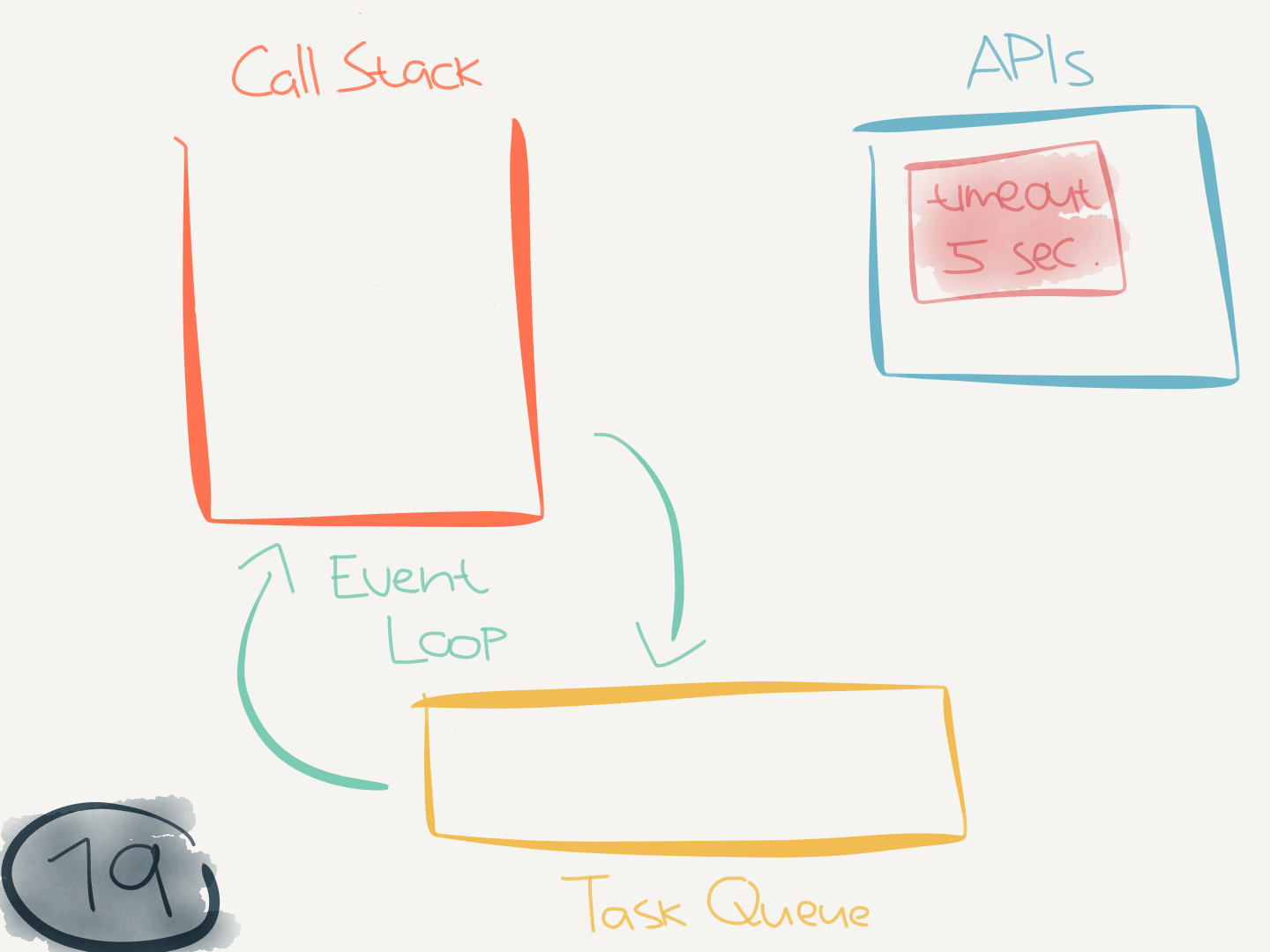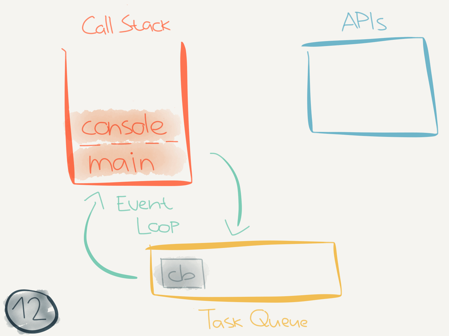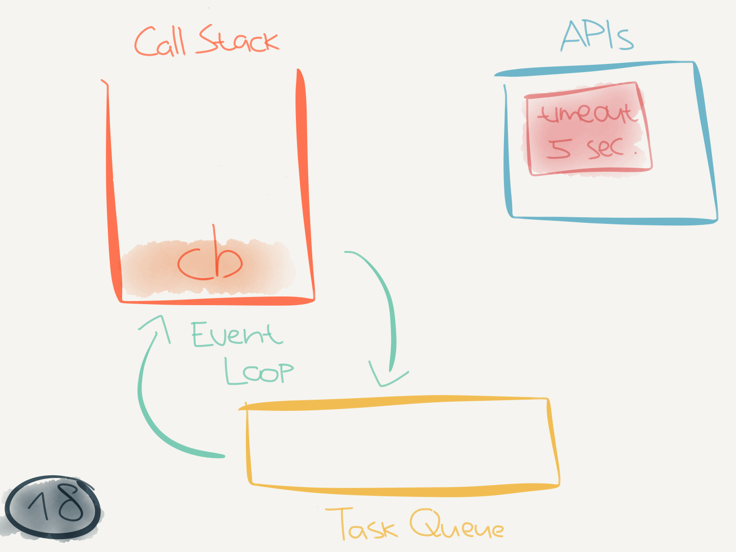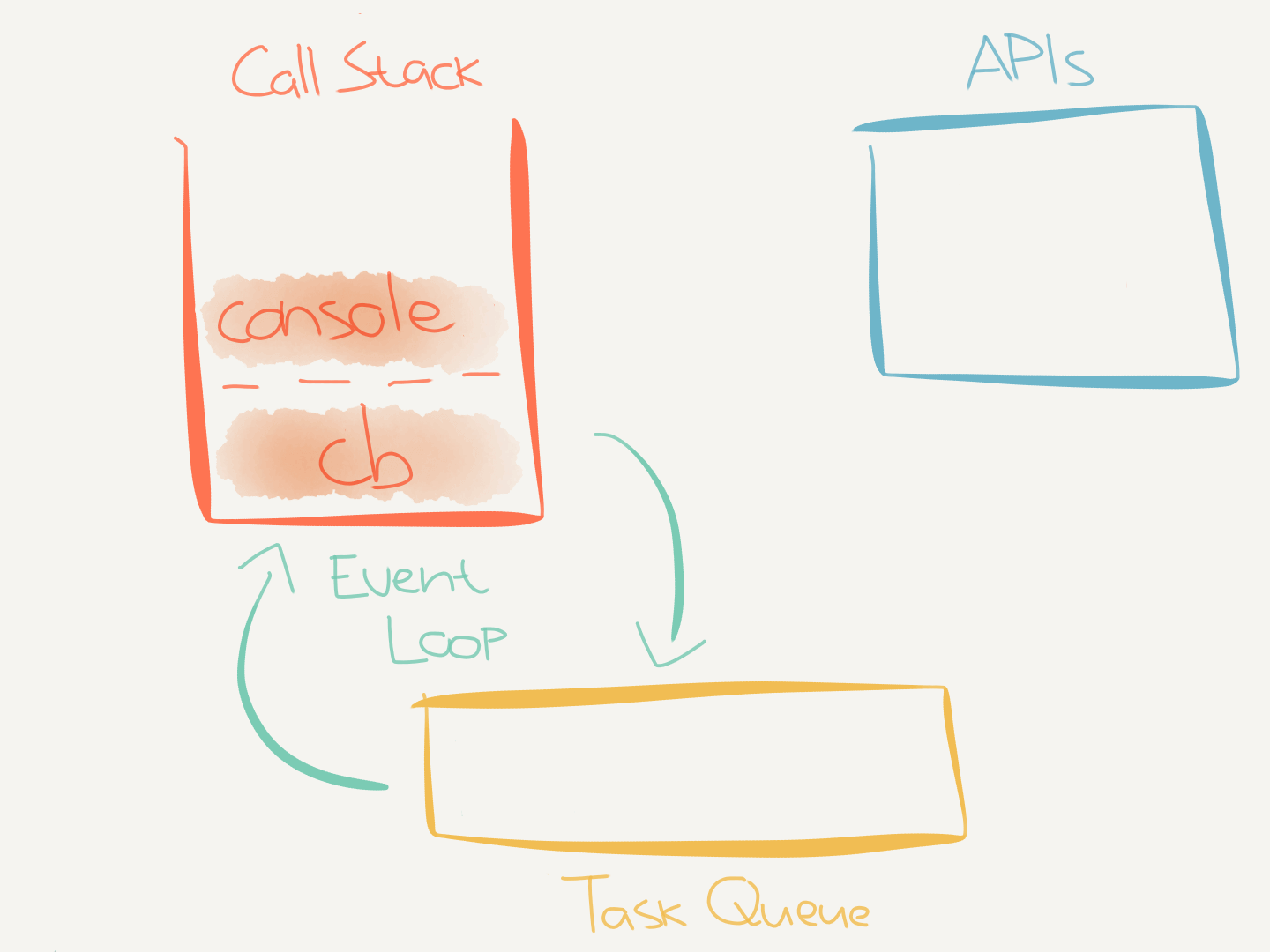 new Promise(callback)executes, it interacts with thePromiseAPI and passes the provided callback to it. ThePromiseAPI sends the callback to the task queue and now must wait until the call stack is empty before it can execute.